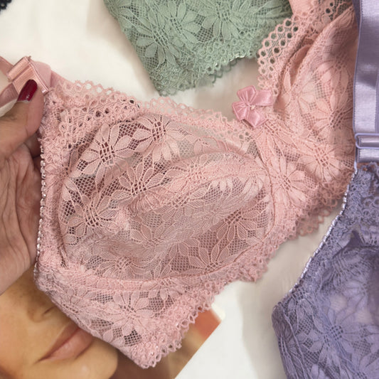 Galaxy Soft Net Bra Without Ring with Flower Lace