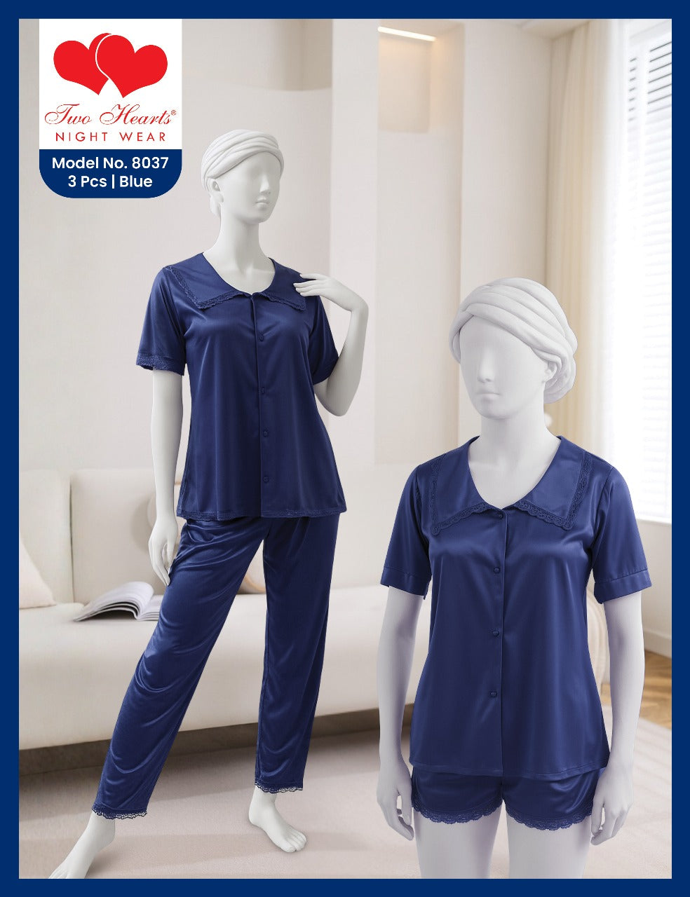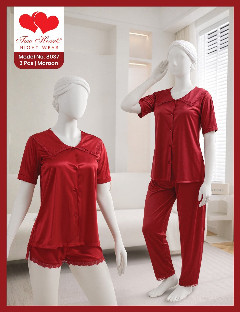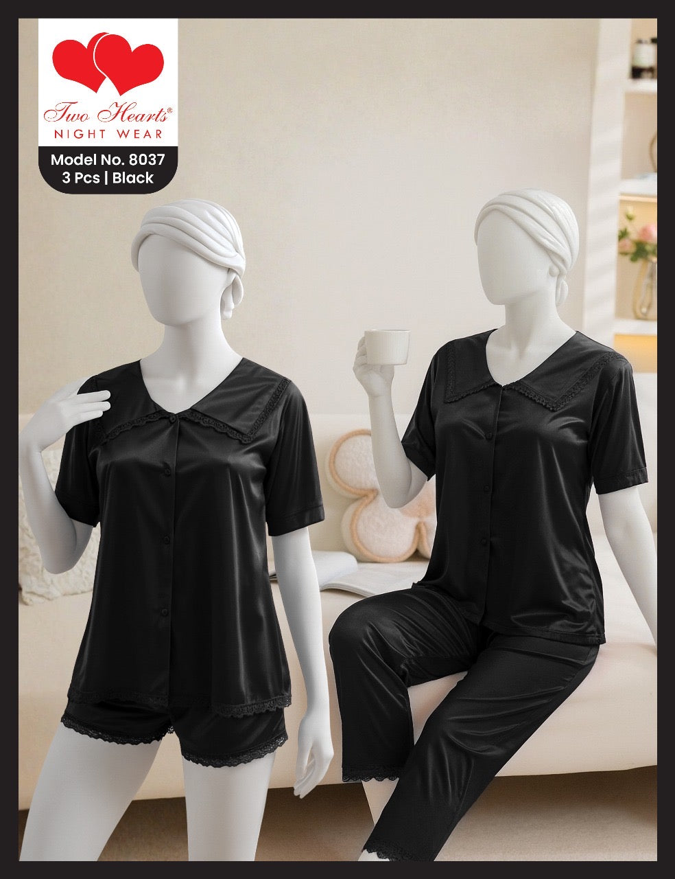 TWO Hearts 3 Piece Soft Silk Nighty